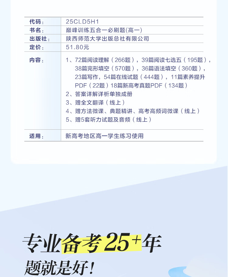 2026新版星火英语巅峰训练五合一必刷题高一(新高考专用)2026新版英语专项练习高考真题新高考英语阅读理解语法填空完形填空七选五听力读后续写作文必刷题真题